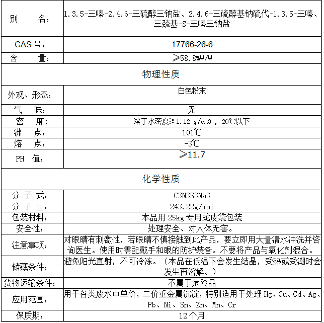1.安全性高。TMT-60無(wú)毒,對(duì)環(huán)境無(wú)害,無(wú)難聞氣味,沉淀金屬時(shí)不會(huì)產(chǎn)生有毒物質(zhì),可放心使用。